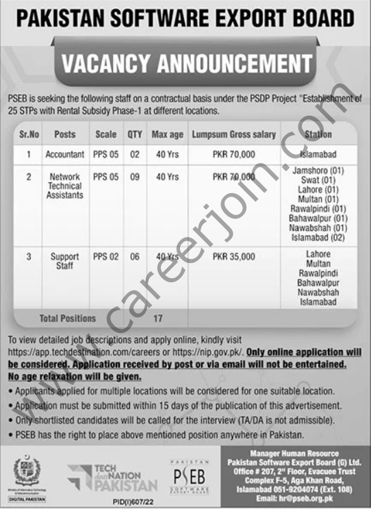 Pakistan Software Export Board PSEB Jobs August 2022: